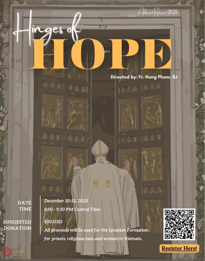 The season of Advent invites us into a sacred rhythm of waiting, expectation, and discovery. It is more than a countdown to Christmas-it is a time to pause, reflect, and rediscover the deeper meaning woven into these weeks of preparation. In that spirit, I’m delighted to share the Hinges of Hope Advent Retreat guided by Fr. Hung Pham, SJ. This retreat offers a space to gather with friends from across the globe, to breathe deeply, to ponder our deepest hopes, and to reflect on how the “doors” of our lives might open wider to grace, to love, and to one another. You’re warmly invited to register here for the ZOOM session and step into this journey of reflection.